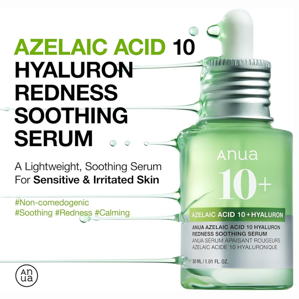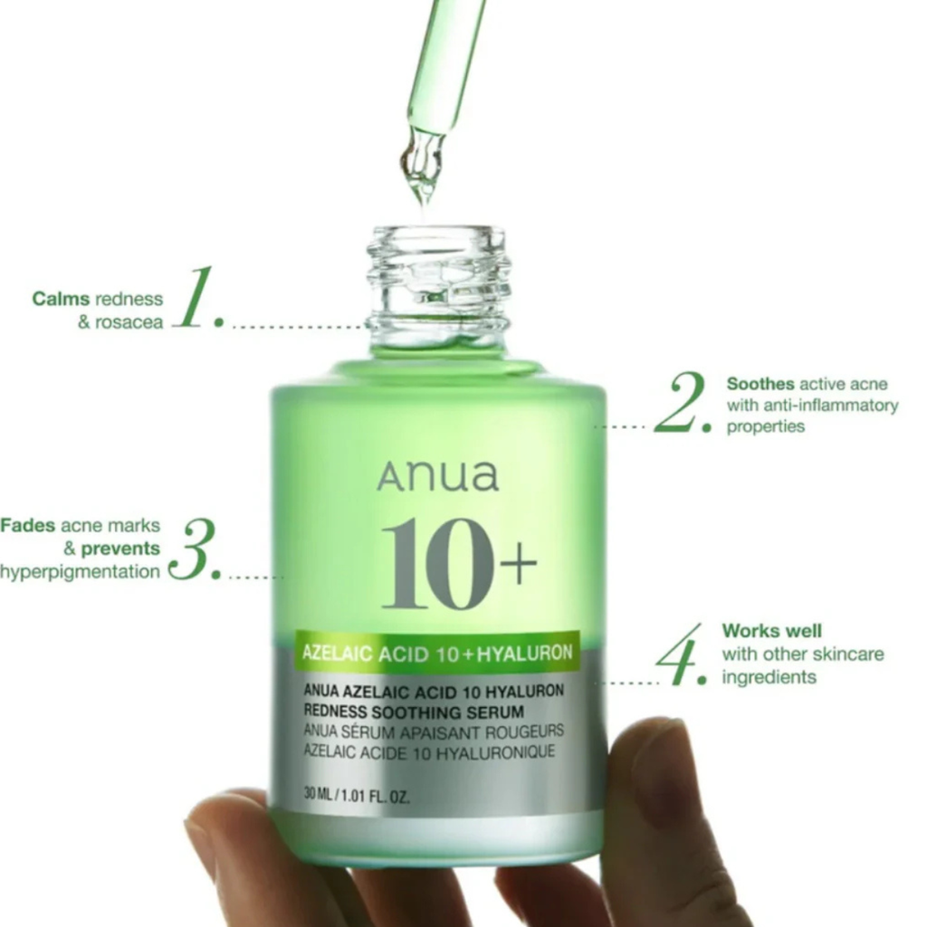 El ANUA Azelaic Acid 10% Hyaluron Redness Soothing Serum es la solución perfecta para pieles propensas al enrojecimiento, irritación o sensibilidad. E