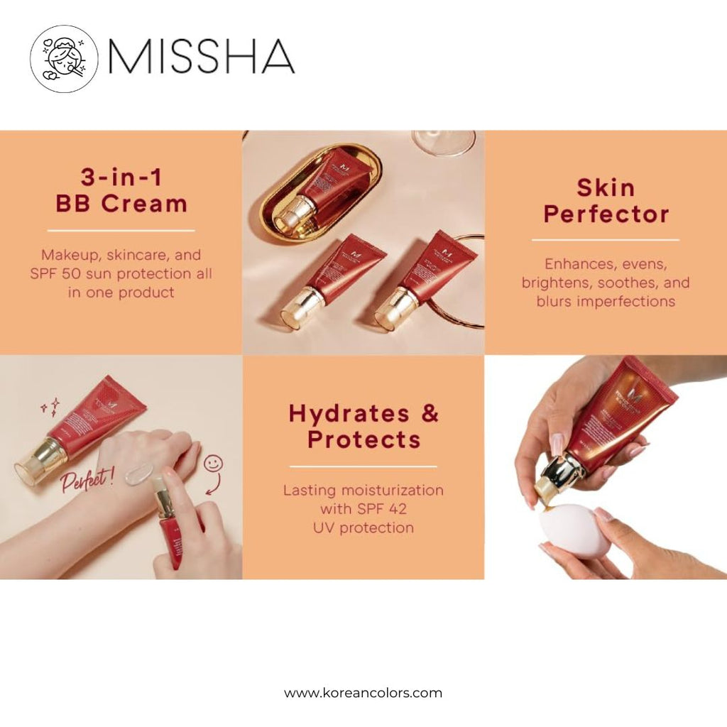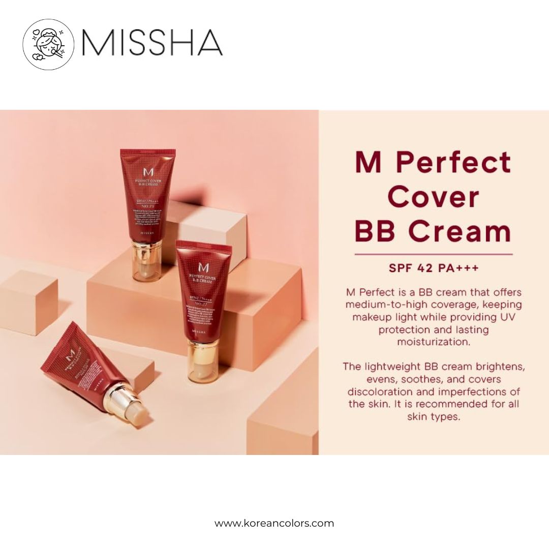 La BB Cream de Missha es una de las más conocidas y vendidas en Corea del Sur. Esta base de maquillaje con SPF 42/PA +++, gusta mucho porque te protege del daño solar, disimula las imperfecciones, equilibra el tono de la piel y proporciona efectos anti- envejecimiento e iluminadores. Tiene una cobertura media que es ideal para aquellas que buscan unificar y dar luminosidad en todo el rostro, teniendo un acabado natural y mate.